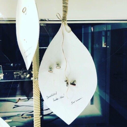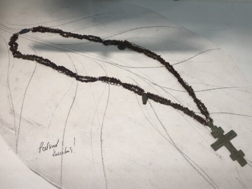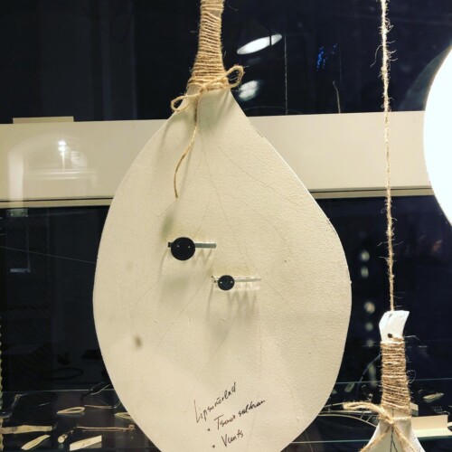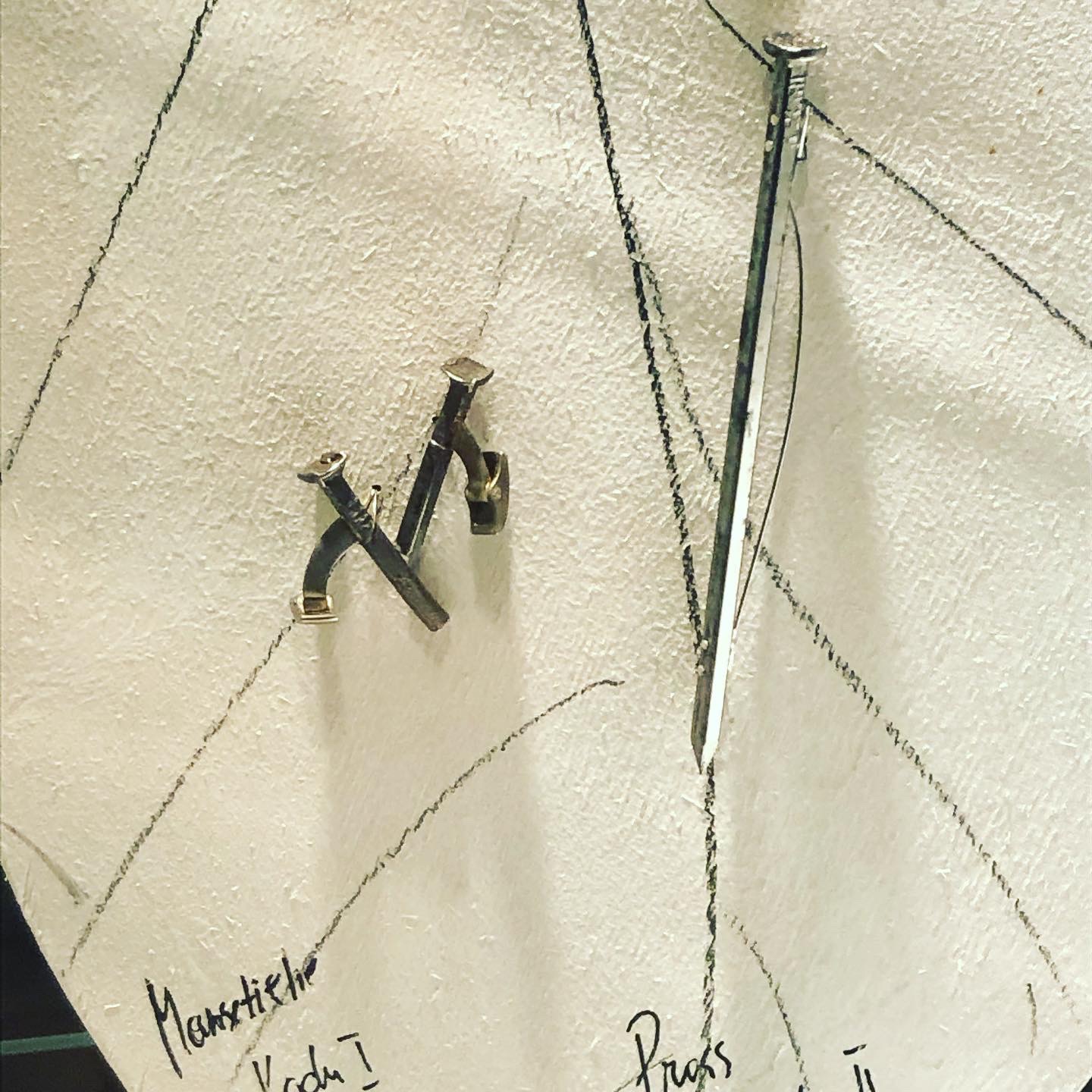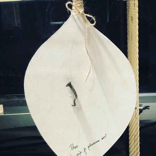 Kunstniku oma koduaia õunapuu lehtede all mullast leitud vanad metallist esemed said sellel näitusel sõna, et rääkida oma lugusid edasi ehetena.