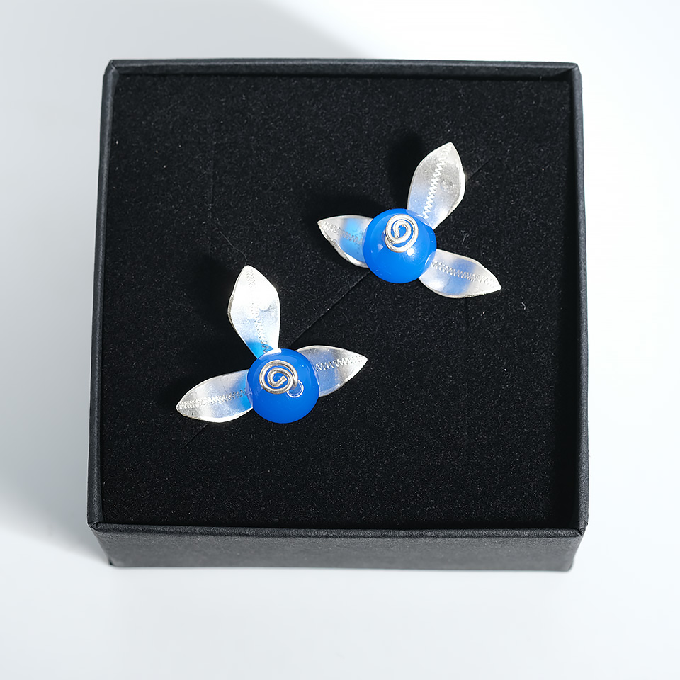 Inspireerituna magusatest mustikatest sai loodud kõrvaehted, mille materjalideks on hele hõbe ja kaunilt toonitud sinine ahhaat. Ehe saabub kaunis kinkekarbis.