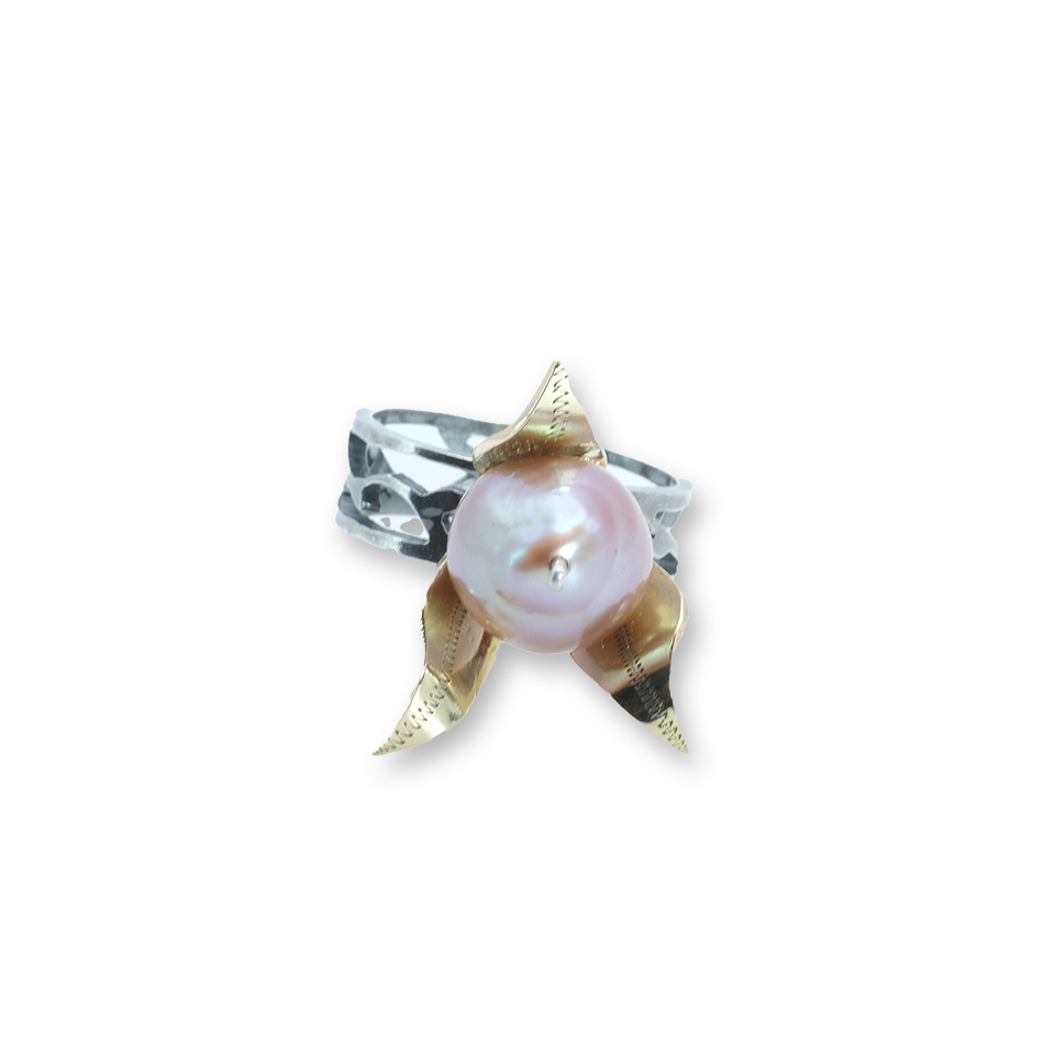 Sõrmuses Edison on kombineeritud kuld prooviga 585 hõbedaga, inspireerituna loodusest. Suur roosaka pärlmutrise tooniga magevee pärl loob sõrmes kandmisel kauni kontrasti kahe metalli vahel. Ehe saabub kaunis kinkekarbis. NB! Et saaksin teha sulle täpselt sinu sõrmuse, siis lisa palun kindlasti ka oma sõrme suurus.