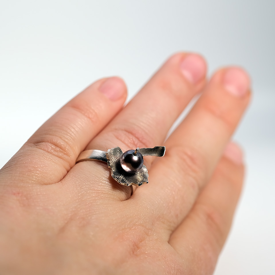 Sõrmus on valmistatud hõbedast ja inspireerituna loodusest, kaunistab seda üks pisike sõstrasilm, naturaalne kaunilt toonitud Jaapani vetest pärit Akoya pärl. Sõstrasilm on pärl looduse rüpest. Akoya pärlit iseloomustab ja teeb kauniks just tema omapärane pärlmutter läige, mis tingitud tema kasvukohast ülisoolases Jaapani lahes. Ehe valmib sinu jaoks käsitööna ja saabub mustas kunstniku märgisega karbis. NB! Et saaksin teha sulle täpselt sinu sõrmuse, siis lisa palun kindlasti ka oma sõrme suurus.
